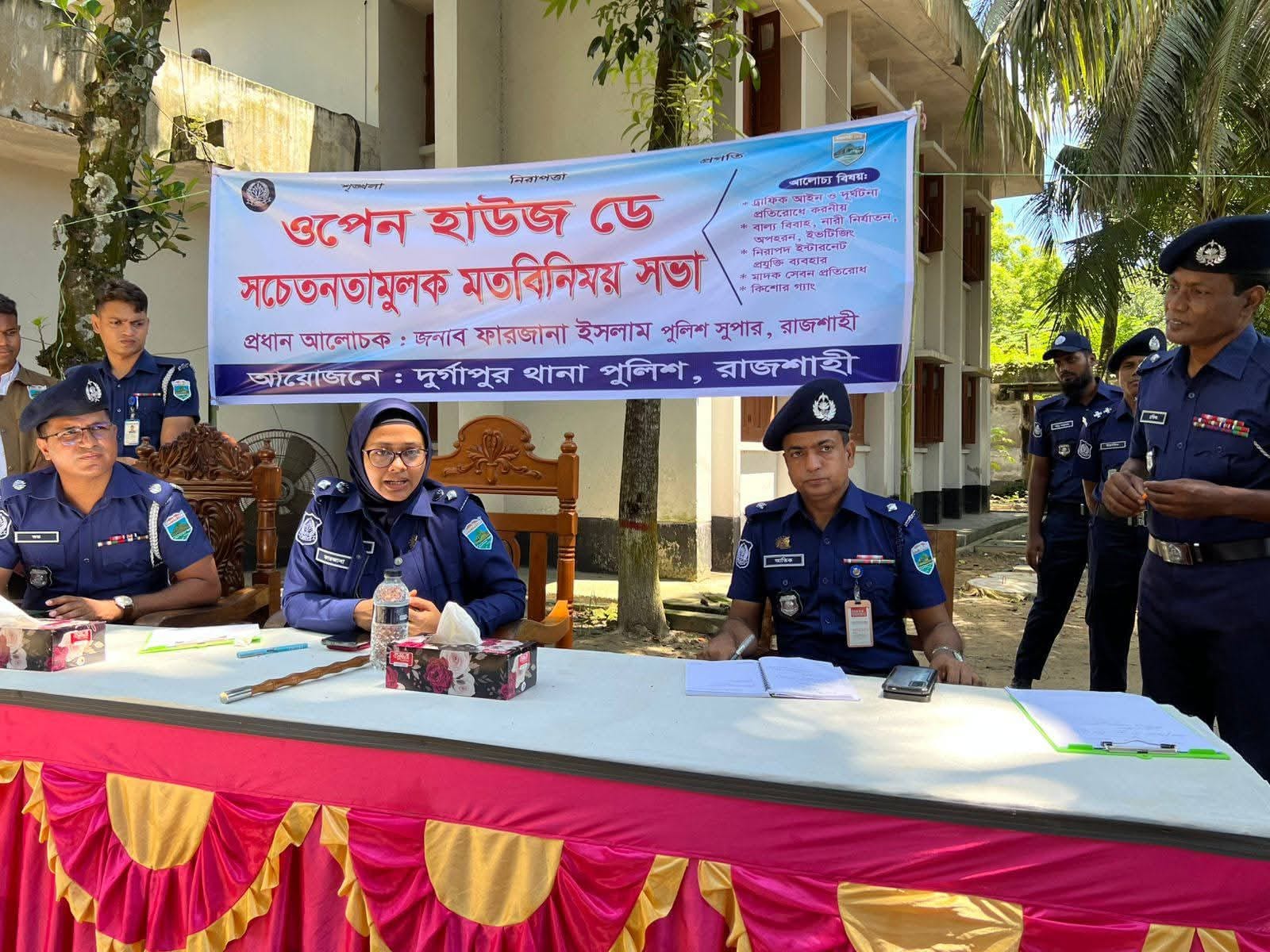 রাজশাহীর দুর্গাপুর থানা পুলিশের উদ্যোগে ওপেন হাউজ ডে সচেতনতামূলক মতবিনিময় সভা অনুষ্ঠিত হয়েছে।
