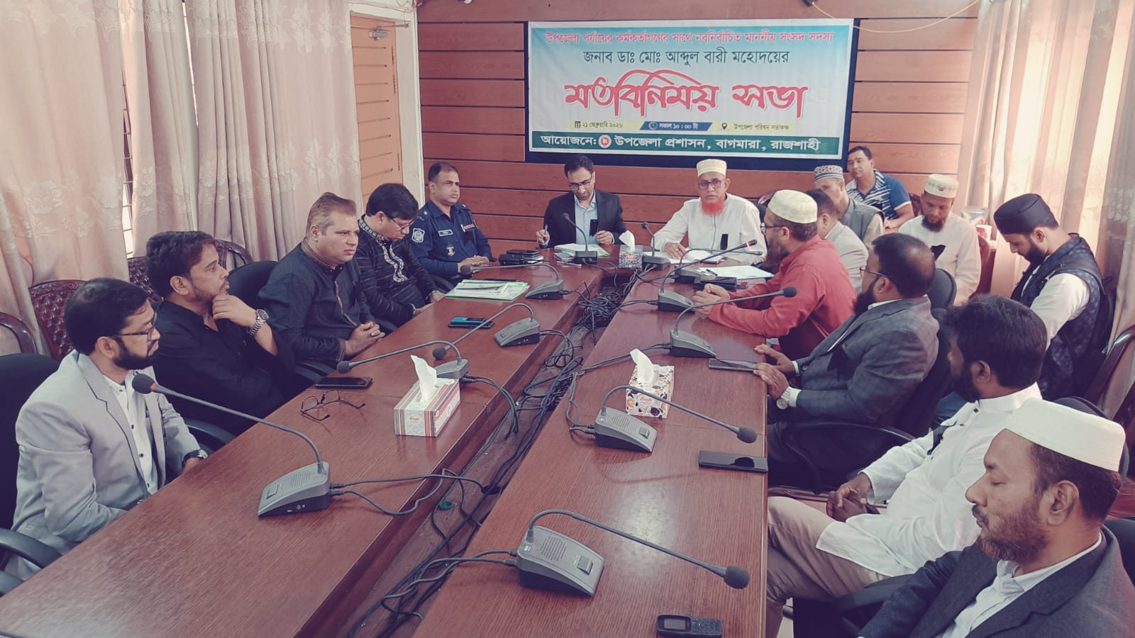 রাজশাহীর বাগমারায় উপজেলা পর্যায়ের বিভিন্ন দপ্তরের কর্মকর্তাদের সঙ্গে নবনির্বাচিত সংসদ সদস্য ডা. আব্দুল বারীর মতবিনিময় সভা অনুষ্ঠিত হয়েছে।