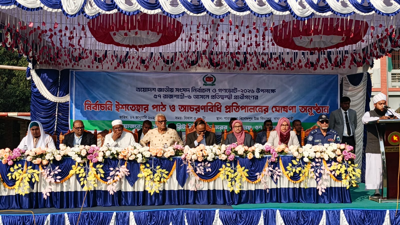 রাজশাহী-৬ আসনের একই মঞ্চে চারজন জন প্রার্থীর নির্বাচনী ইশতেহার পাঠ অনুষ্ঠান