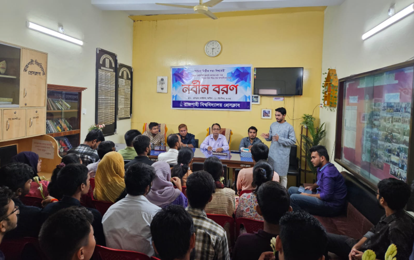 রাবি প্রতিনিধি : রাজশাহী বিশ্ববিদ্যালয়ের (রাবি) ২০২৫-২৬শিক্ষাবর্ষের নবীন শিক্ষার্থীদের বরণ করে নিয়েছে রাজশাহী বিশ্ববিদ্যালয় প্রেসক্লাব। বৃহস্পতিবার (৩১ অক্টোবর) বেলা ১২টায়