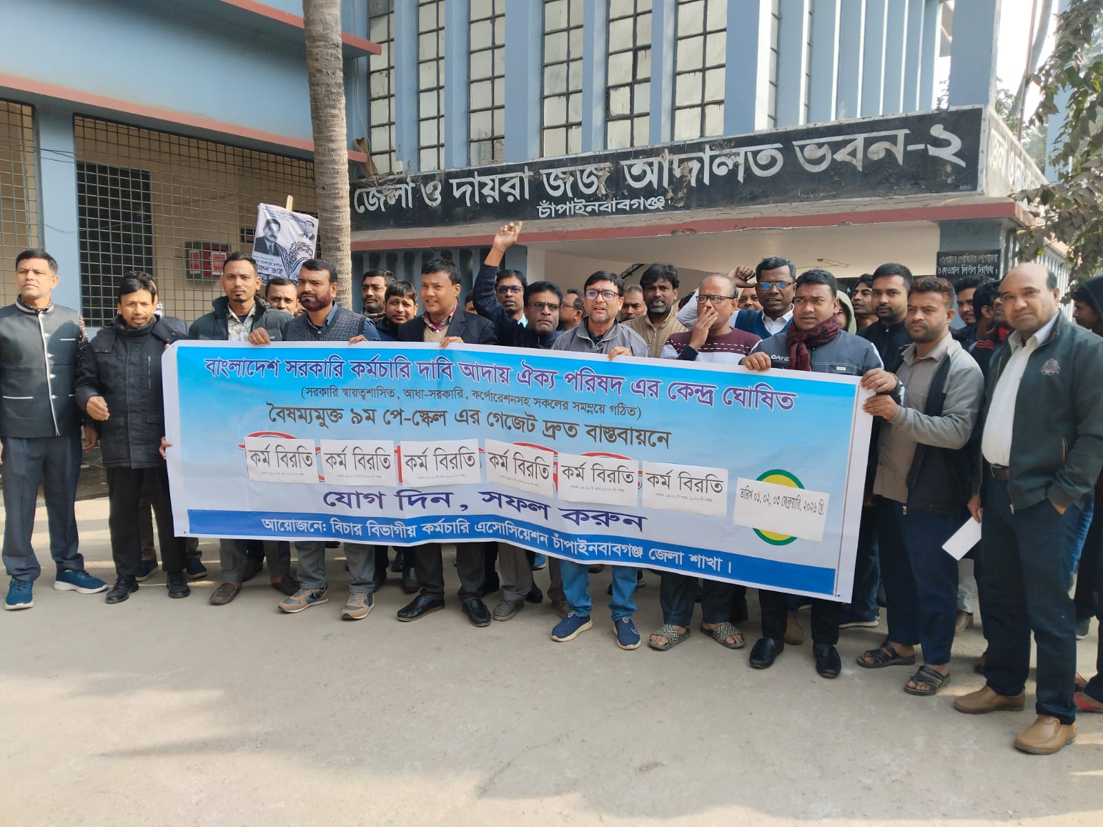 ৯ম পে-স্কেল দ্রুত বাস্তবায়নের দাবিতে চাঁপাইনবাবগঞ্জে বিচার বিভাগীয় কর্মচারীদের কর্মবিরতি